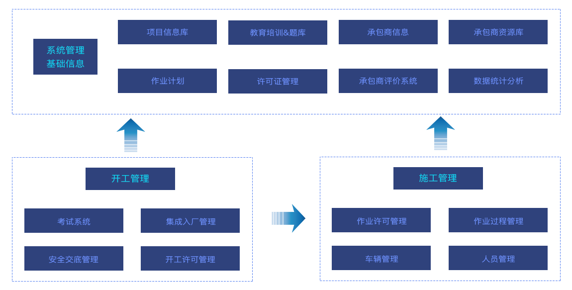 基础信息:包括承包商档案信息、考试题库、作业许可、人员信息等基础信息。